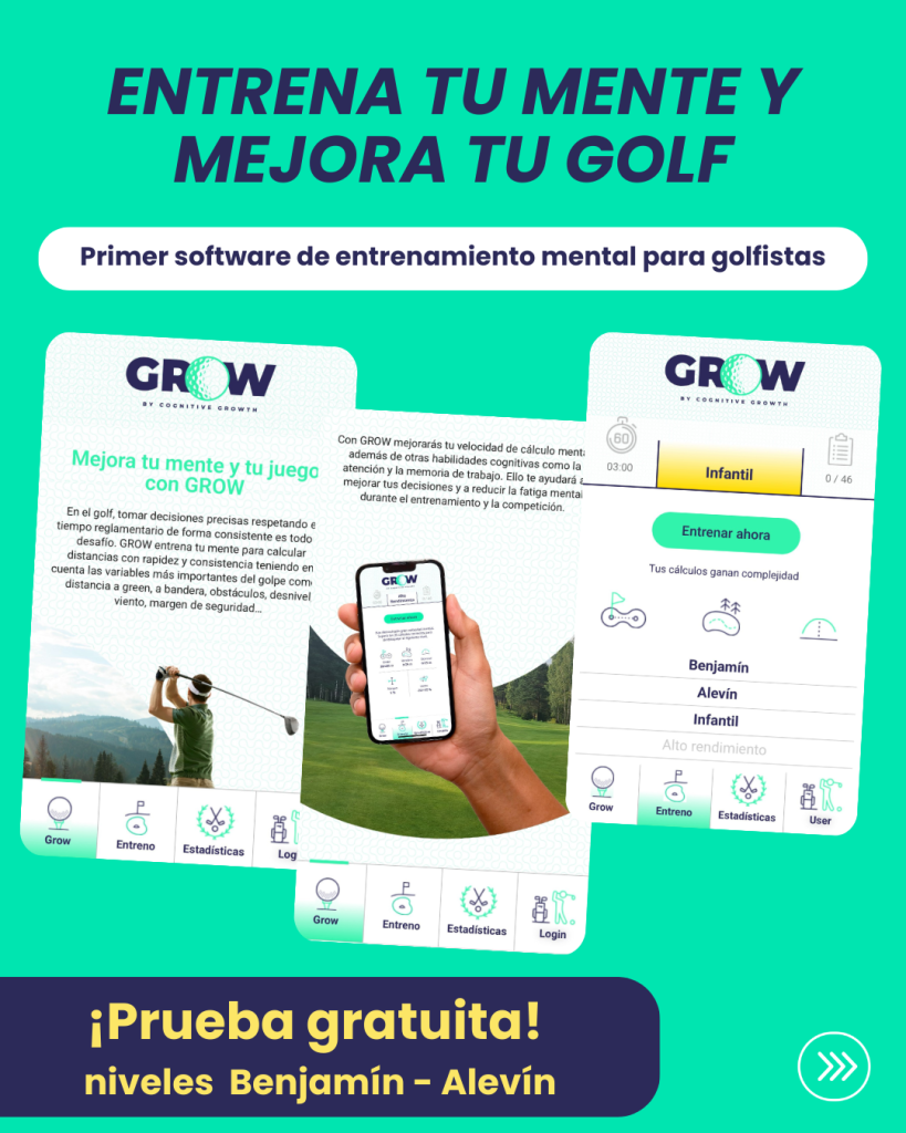 Aquesta empresa ha desenvolupat un software anomenat GROW, el qual està enfocat en la millora del càlcul mental específic per al golf i d’habilitats cognitives com l’atenció i la memòria de treball, entre d’altres. En el nostre pròxim torneig, al C.G. VALLROMANES, sortejarem 10 subscripcions anuals gratuïtes amb un valor de 49,99 € cadascuna.